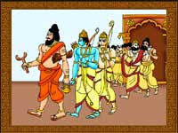 Dasharatha ordered his ministers," I want you to find a suitable bride for my dear Rama. Also seek a suitable bride for my sons Bharata, Lakshmana and Shatrughna..." While he was still issuing these instructions, suddenly entered into the palace of Dasharatha the great muni Vishwamitra who had extraordinary splendour and great energy.